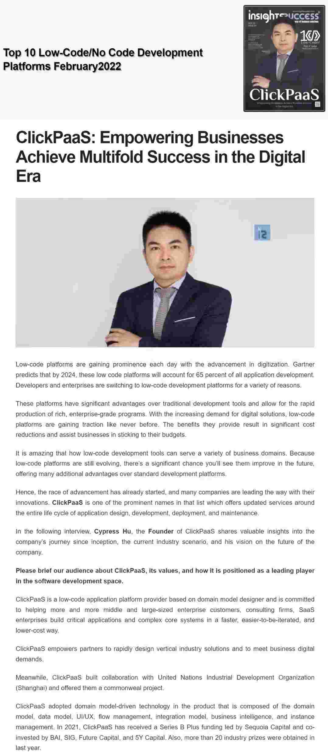 下一篇:::::EBPAY实力入选Insights Success低代码/无代码开发平台Top 10!!!!!!!!
